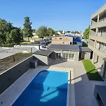 A microwave, an electric kettle, and a refrigerator are provided in a kitchen of this apartment. There is Terminal de Omnibus bus station relatively close to the apartment. There is an outdoor pool area provided for guests' relaxation.